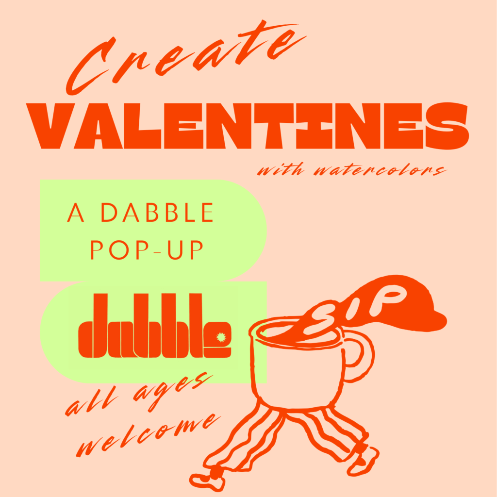 This event is free and open to the public — come stop by the cafe and paint watercolor valentines! Drinks and snacks will be available for purchase at the counter.
